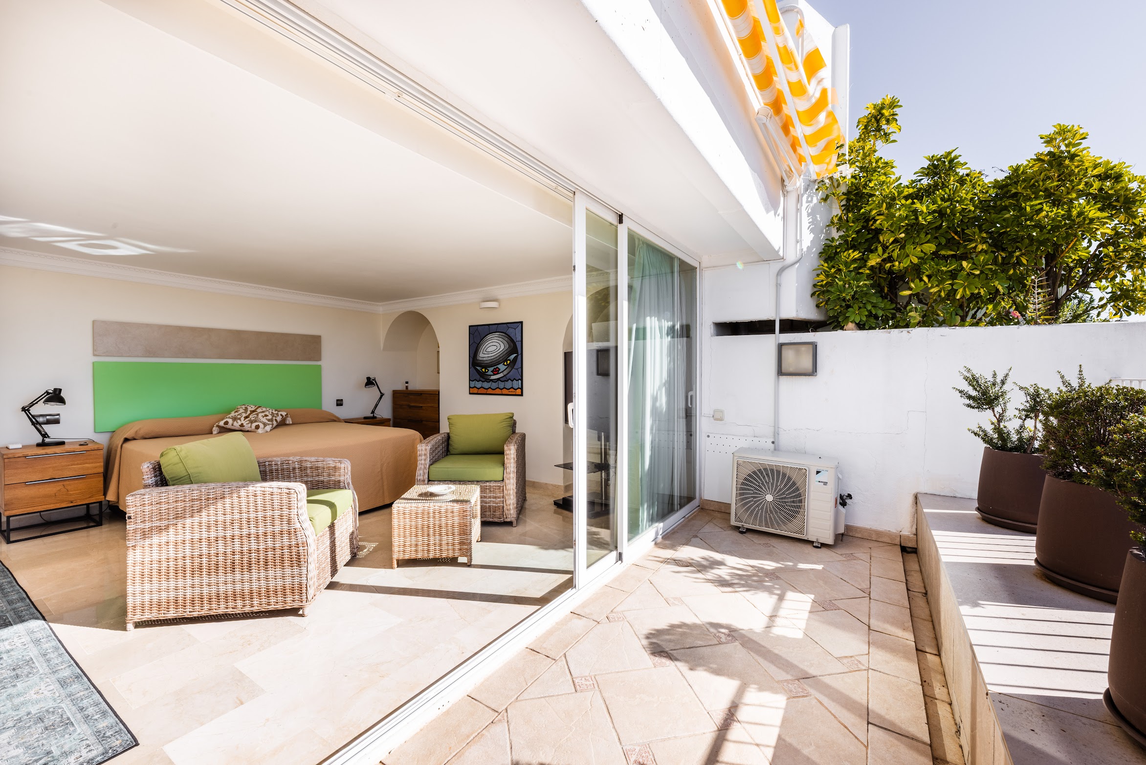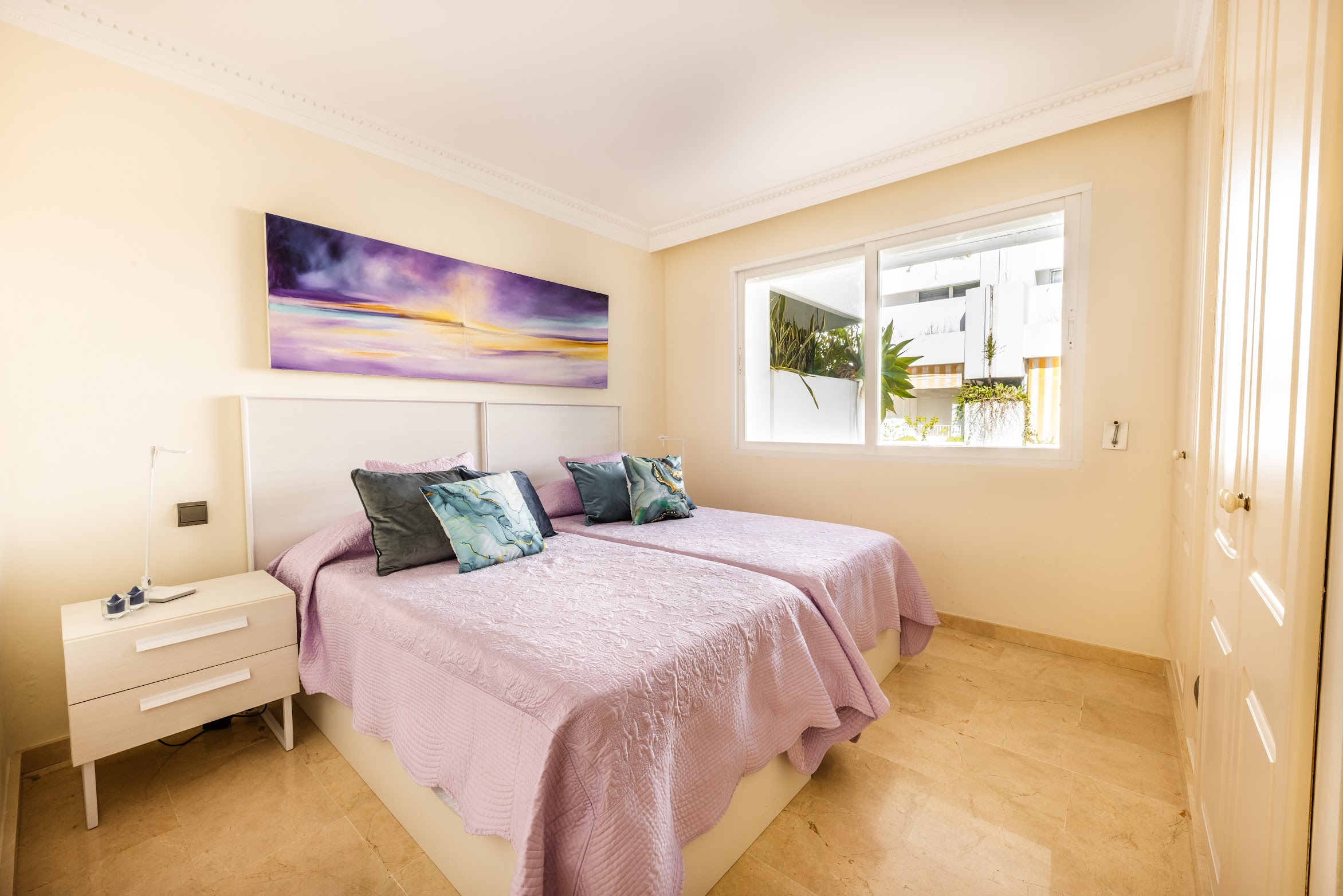 Located in a gated and peaceful community in Marbella with 24/7 security. The residence offers underground parking as well as guest parking. The apartment has a private salt water swimming pool. Close by you’ll find tennis and golf facilities, along with the well-known restaurants of Puente Romano, ensuring an unforgettable Marbella holiday experience.