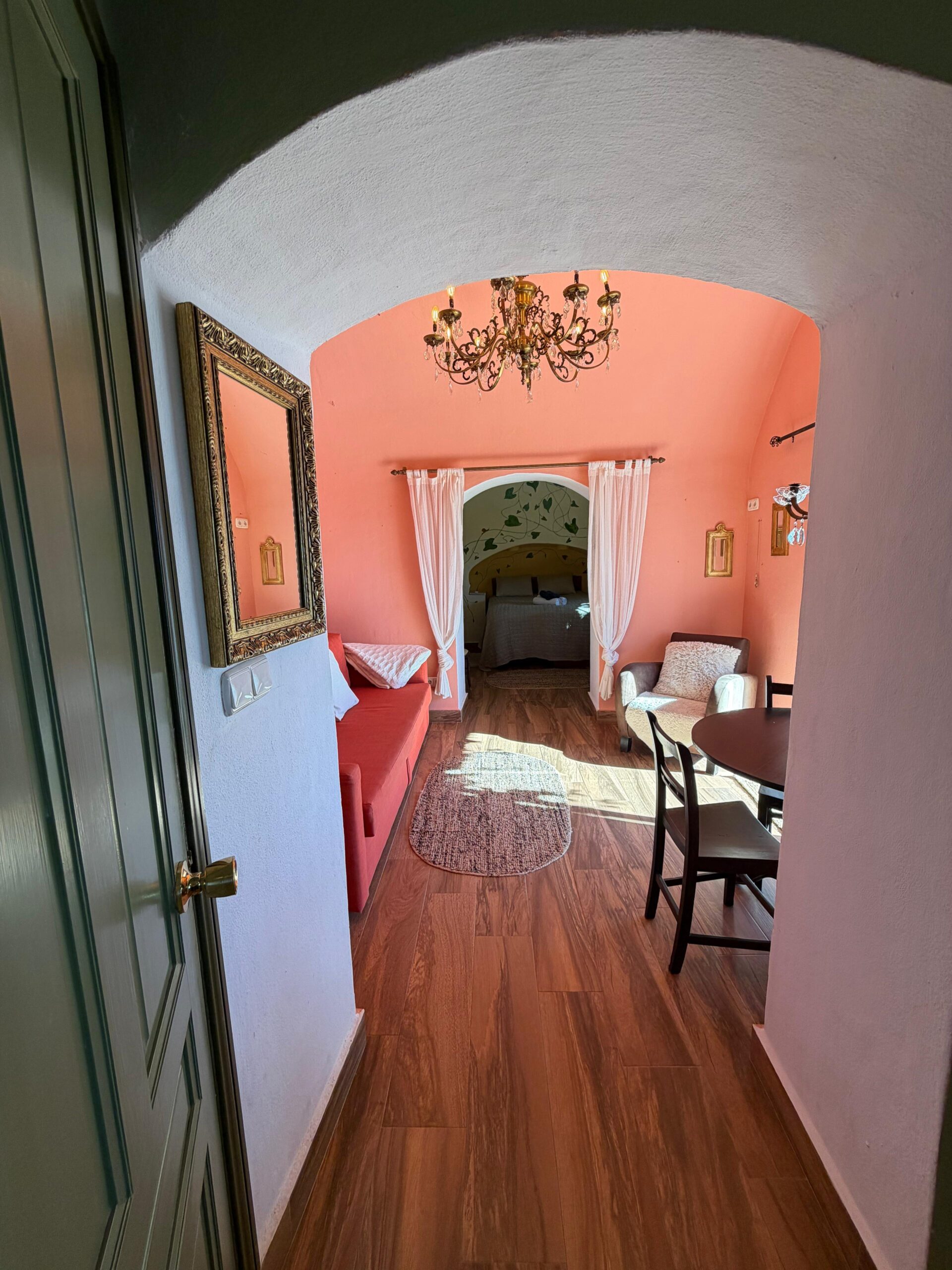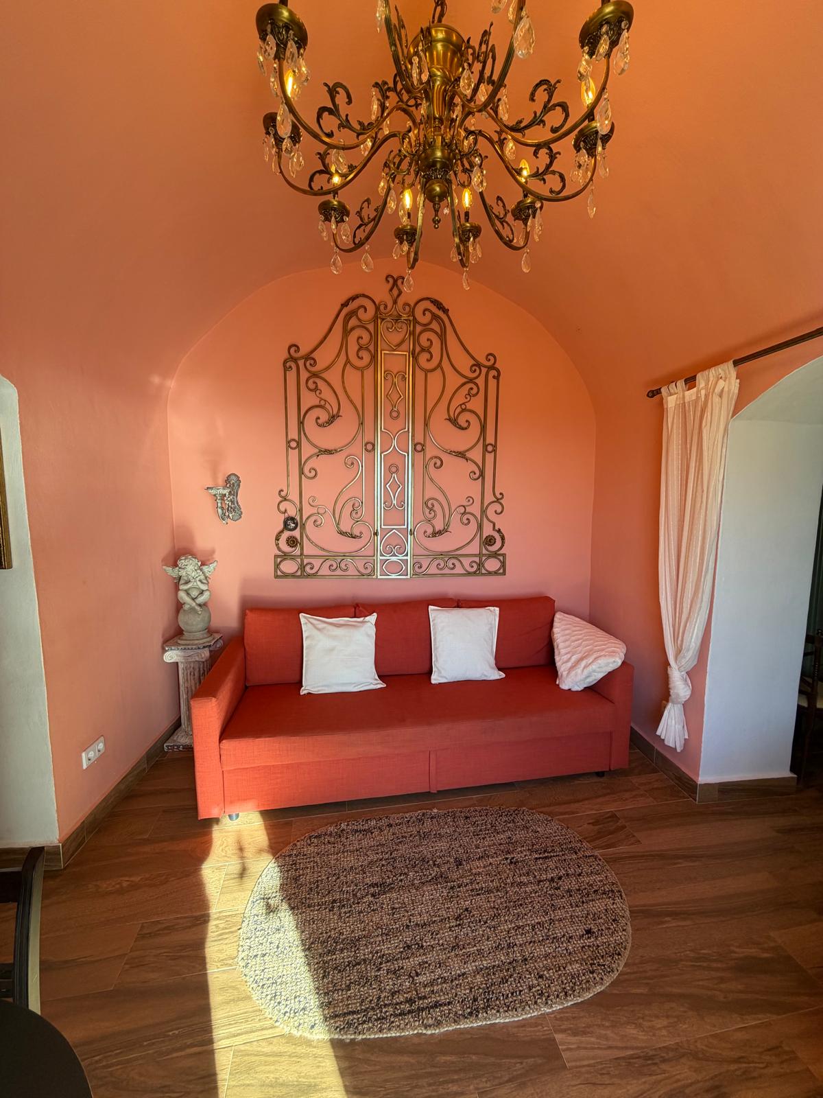 The home consist of a living room, dining area, well equipped kitchen, 1 bedroom and 1 full bathroom. There is a swimming pool for the guests to enjoy. The living room has a sofa bed which makes the apartment perfect for up to 4 people to share the space. It also offers parking on gated territories.